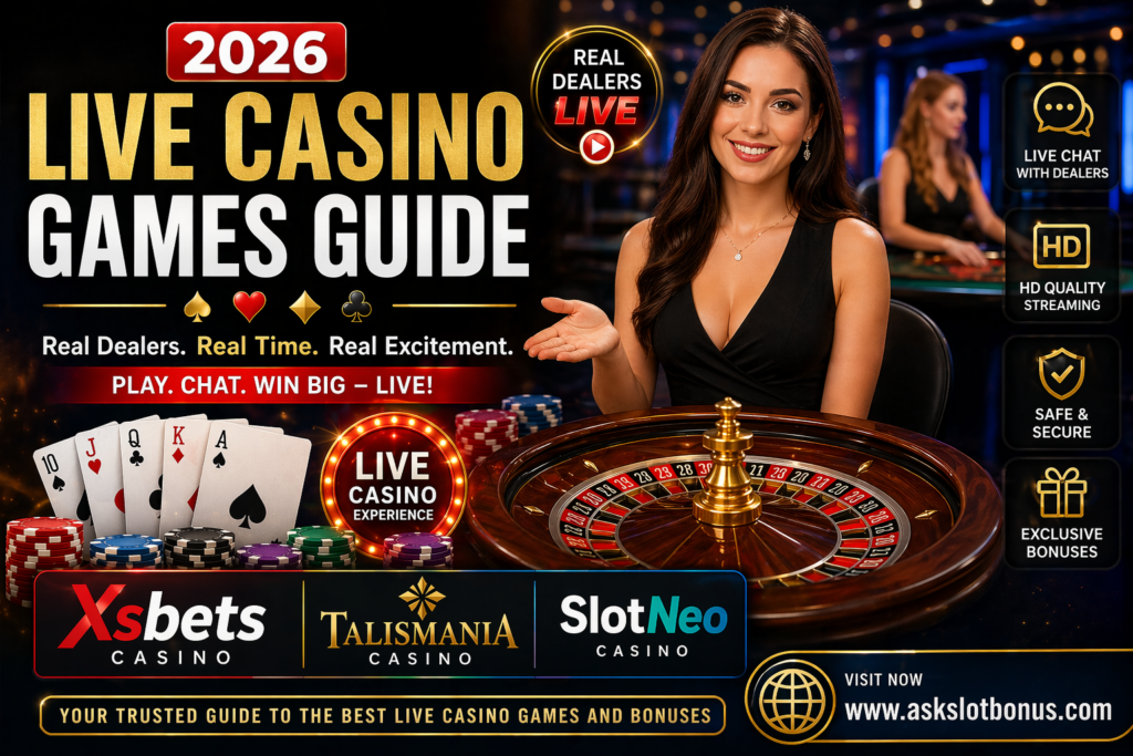 Live casino games provide the perfect blend of realism and convenience, making them a top choice for online players in 2026. With trusted platforms like Xsbets Casino, Talismania Casino, and SlotNeo Casino, players can enjoy immersive gaming experiences from the comfort of their homes.